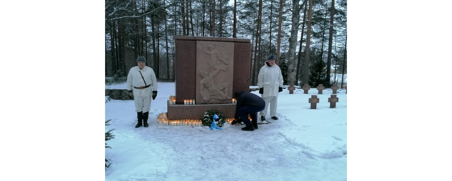 Valtimon reserviläiset ja Valtimon reserviupseerit sytyttivät haastavissa olosuhteissa pe 13.3 2020 talvisodan päättymisen kunniaksi 105 kynttilää.