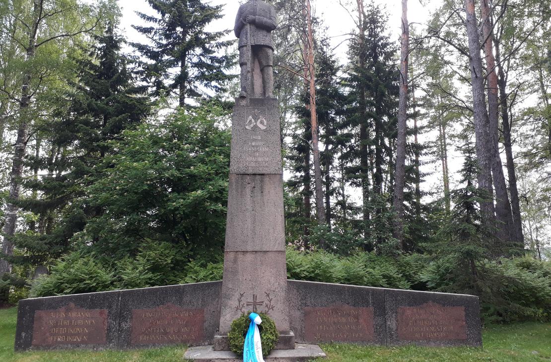 Seppeleen lasku Olli Tiaisen muistomerkille.
